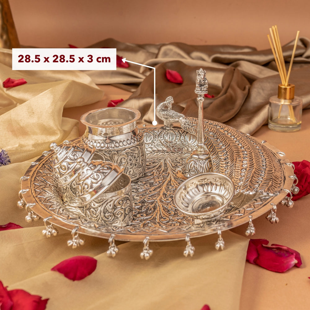 Bring tradition and elegance together with the timeless Copper Charm Hamper. Crafted from pure copper with a sleek finish, the hamper features copper bottles and glasses along with decorative elephant diyas and much more.