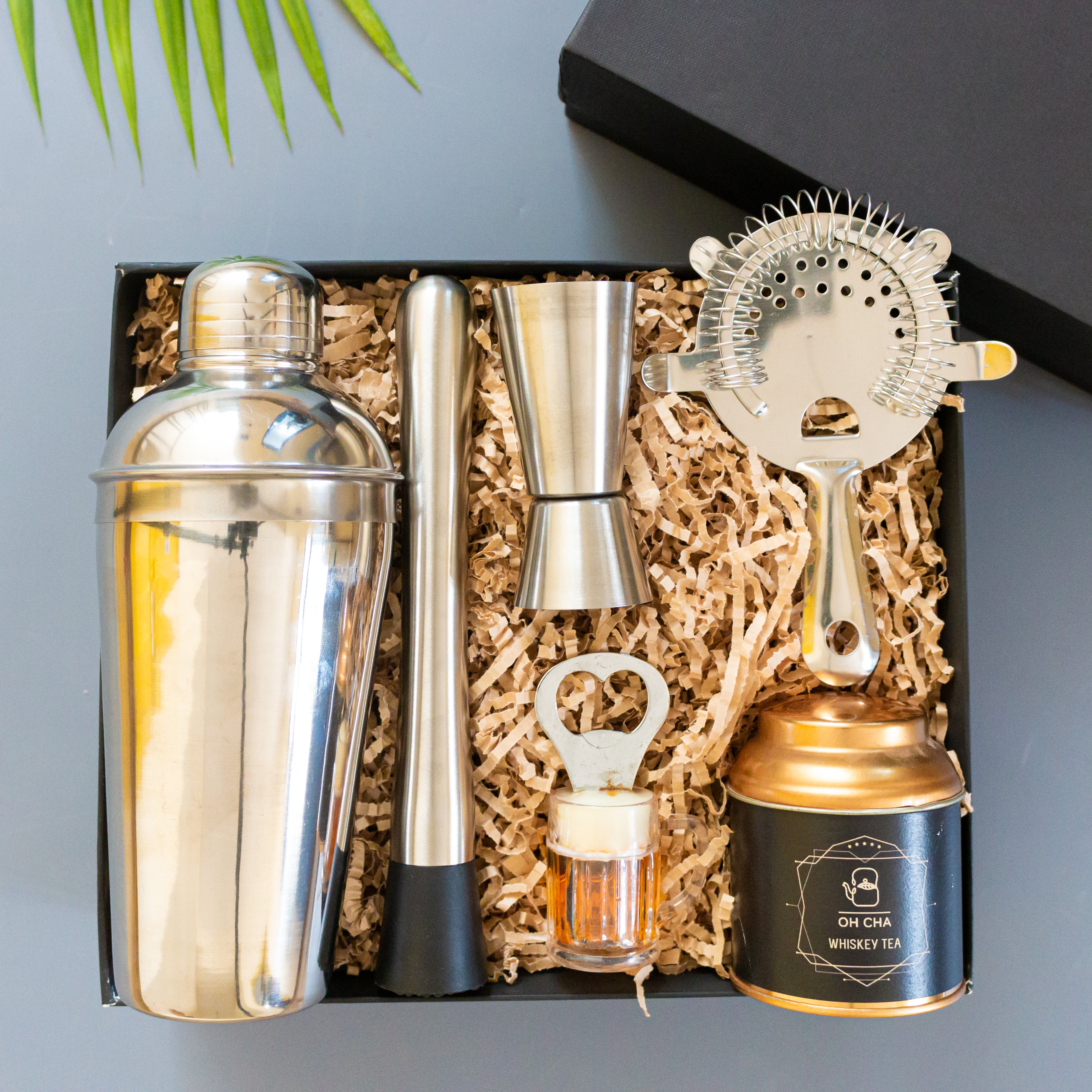 Inside the reusable Zappy gift box, you will find a cocktail shaker, stirrer, muddler, strainer, double-sided peg measurer, and a bottle opener. This bar set gift comes in a golden finish, adding a flair to any bar setup. It is a great last-minute barware accessories gift-ready option for birthdays, anniversaries, housewarmings, bachelor parties, etc.