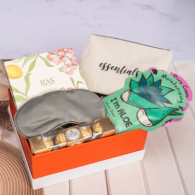 Indulge in timeless elegance and self-care with the All Things Luxe Gift Box, thoughtfully curated to pamper and impress. This premium hamper includes the luxurious RAS Skincare Trio, a nourishing body wash, rich body lotion, and cleansing bar that bring the spa home. Paired with a pack of 4 Ferrero Rocher chocolates, 2 assorted TonyMoly sheet masks, and a soft satin eye mask, it’s perfect for moments of rejuvenation. A versatile canvas pouch adds utility and charm, while a personalizable greeting card adds emotional value to your gesture.