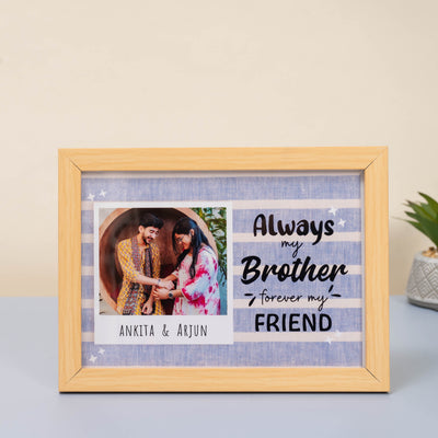 This Raksha Bandhan, go above the typical gifts and honor your sibling connection with something truly special: Our Personalized Cherished Memories Frame. This custom quote frame for brother is designed to highlight the moments that are most important to you. You can include your favorite photo as well as both of your names to create a timeless remembrance. This wooden quote frame nicely depicts your relationship and the memories you've shared. Its sleek design and high-quality finish make it ideal for any area, whether it's a bedroom shelf, a gallery wall, or your sibling's work desk. This rakhi gift for brother is more than simply another item; it reflects all you've shared together. It is ideal for both close and distant siblings and goes well with other rakhi hampers or personalized rakhi gift boxes. Make your Rakhi celebration extra special with this thoughtful, personal gift.