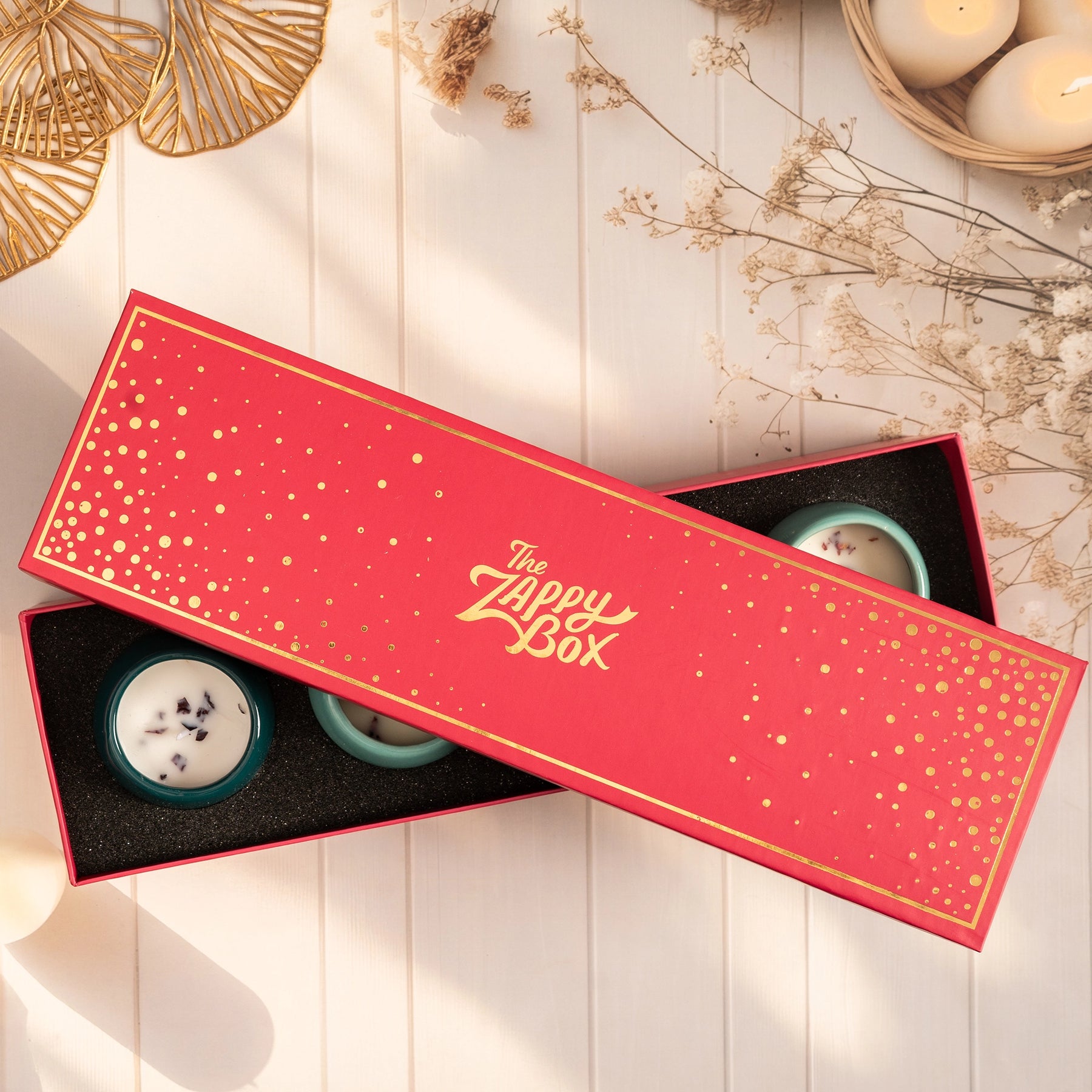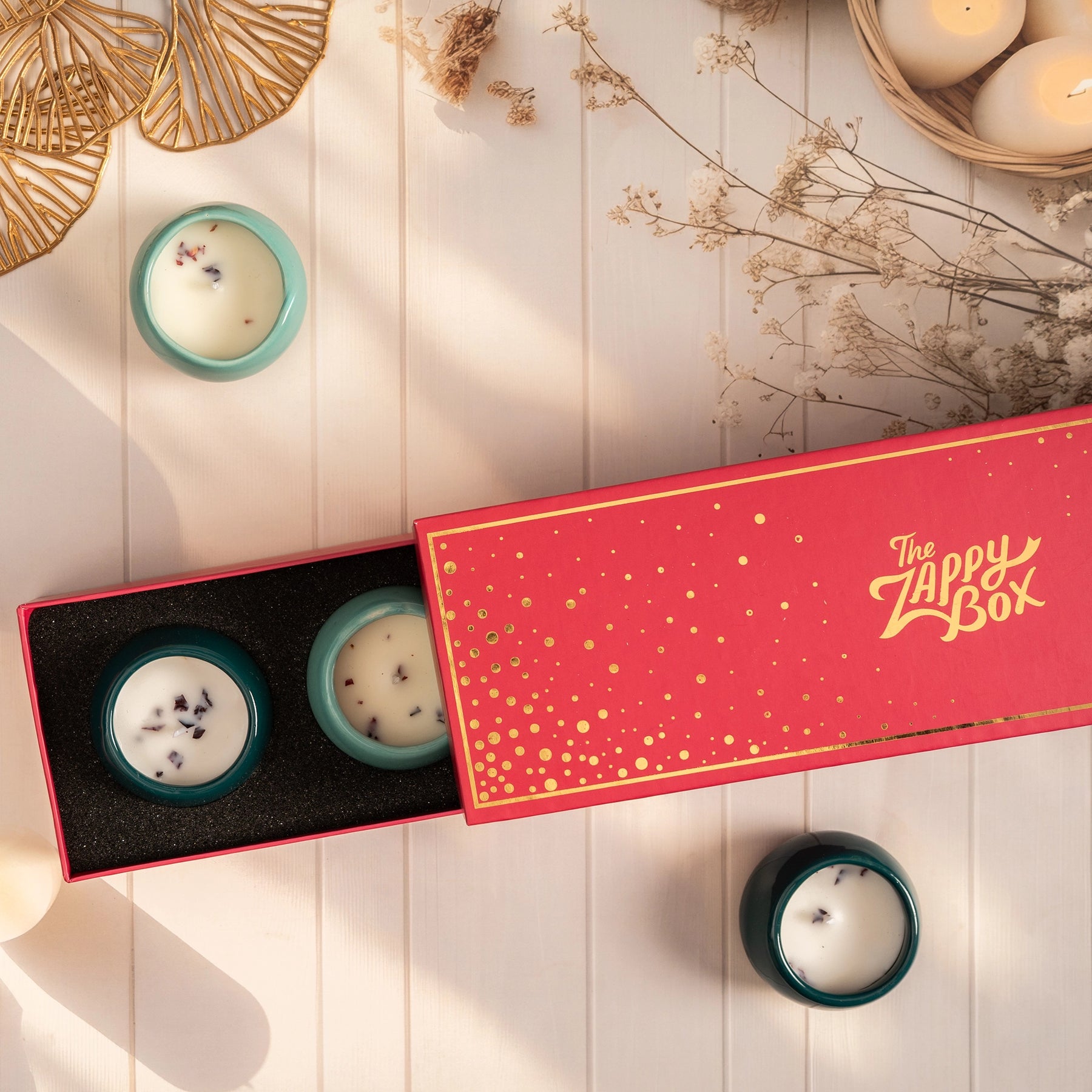Fill your space with the enchanting aroma of our Rose Petal Candle Set from The Zappy Box. If you want to add a touch of aesthetic home decor charm, these soy wax rose petal candles are perfect for you. For personal use or gifting, these decorative rose candles create a cozy, inviting atmosphere as they emit a warm, comforting glow. You can count on this scented candle set to elevate the mood of your evenings, intimate gatherings, or moments of unwinding after a long day. No matter the occasion, this rose petal scented candle gift set impresses with its blend of beauty and quaint charm, making it an elegant addition to your Diwali decor.