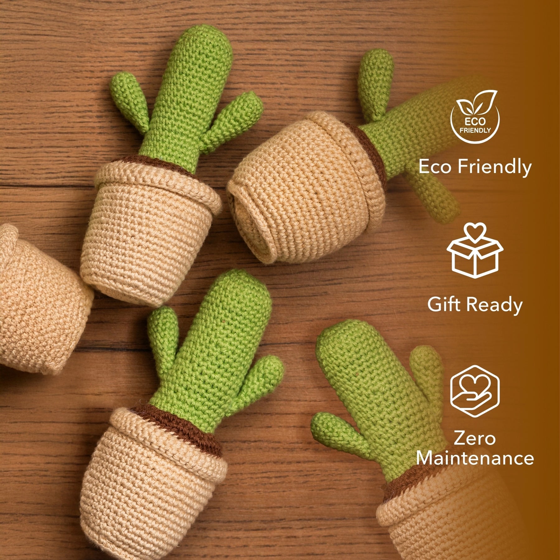 This handcrafted crochet cactus can be a whimsical addition to your space. Cactus plants are known to add a calming presence in any living space. This little crochet cactus pot, made of high-quality yarn, adds nature’s beauty to your decor without requiring maintenance. Its bright and vibrant colors will instantly bring you joy and make your day brighter. This crochet mini cactus has a cheerful vibe, which is exactly what any simple space needs. It will seamlessly blend into your home decor, making any space, like your car dashboard or office desk, more lively. You can also make a crochet cactus garden on your desk to soothe your eyes with the greenery.