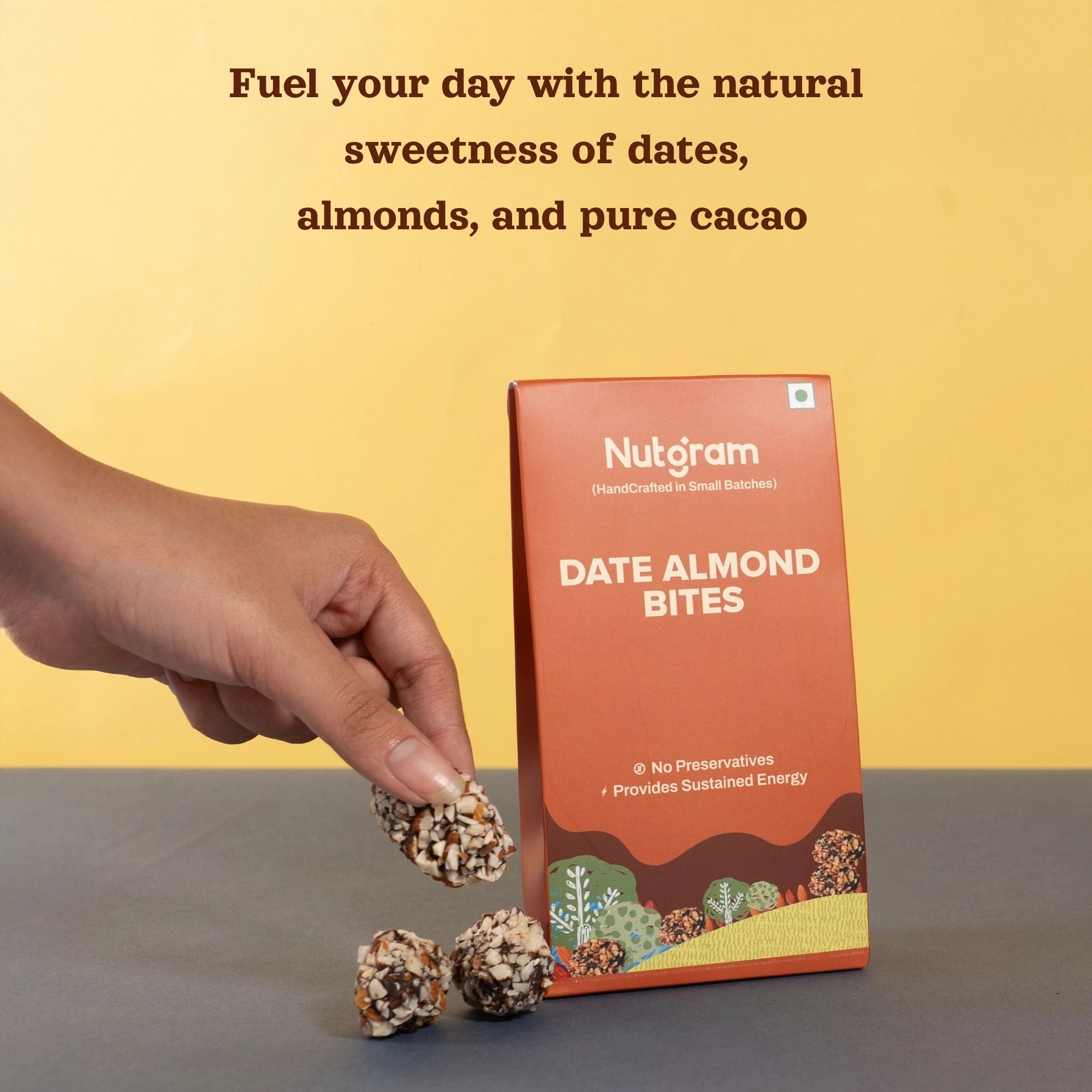 Savor the goodness of Date Almond Bites - 85 g from The Zappy Box, nutritious, naturally chocolatey, and perfect for guilt-free snacking or thoughtful Diwali festive gifting. Each bite brings together the wholesome flavors and health benefits of dates and almonds, ingredients revered for their balanced energy, fiber, antioxidants, and sustained nutrition. Dates are packed with natural sugars, potassium, magnesium, and powerful antioxidants, providing quick, stable energy and supporting heart and brain health.