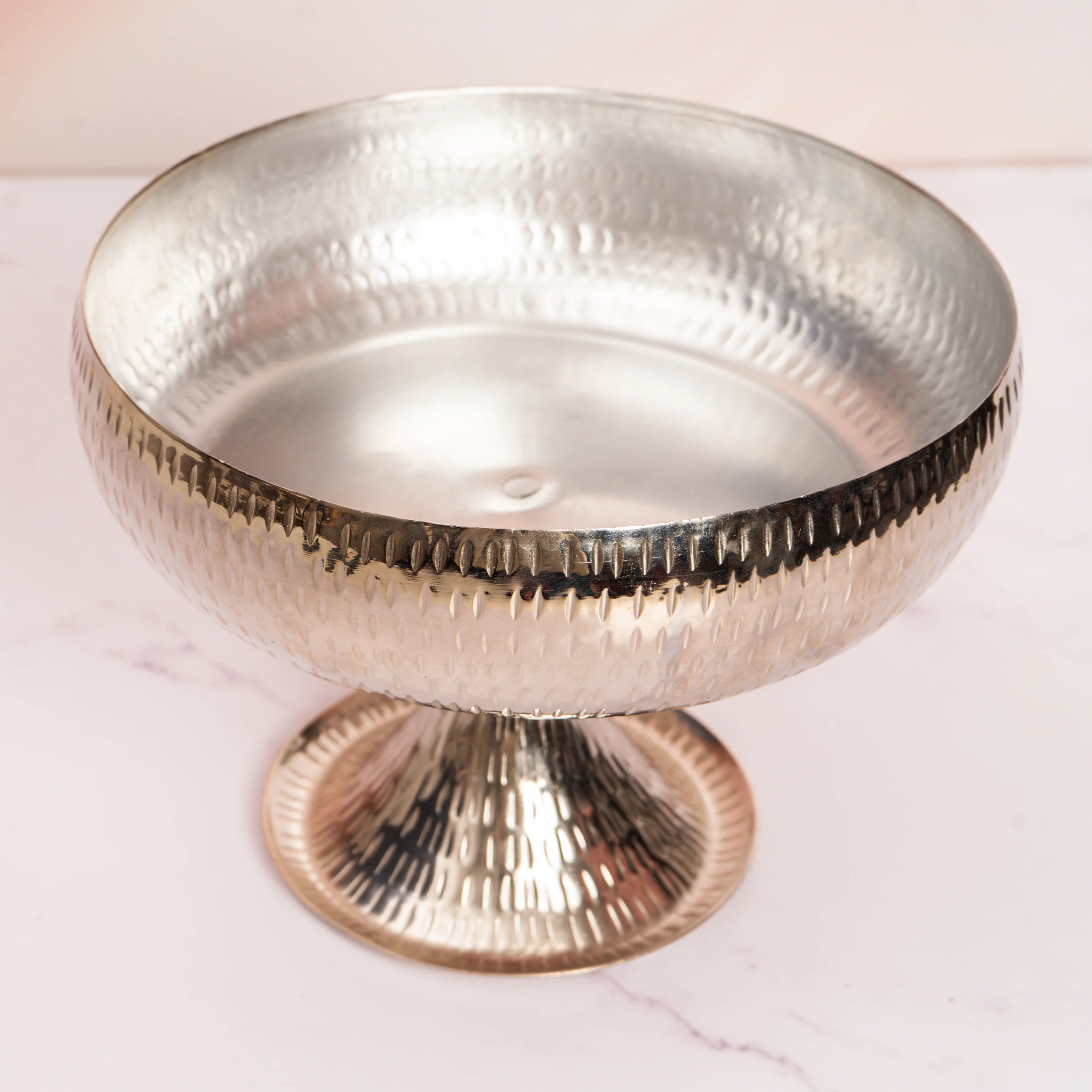 Upgrade your home decor with the German Silver Decorative Bowl that comes with a Resin Stand. This German silver bowl showcases an antique allure, making it a standout piece in any setting. The silver finish and the vintage-style design of this bowl with a stand bring a royal touch to your interiors, making it an elegant addition to your Diwali decor. This flower-shaped bowl measures 16 x 16 x 14 cm and weighs just 260 grams. It seamlessly reflects the beauty of traditional craftsmanship.