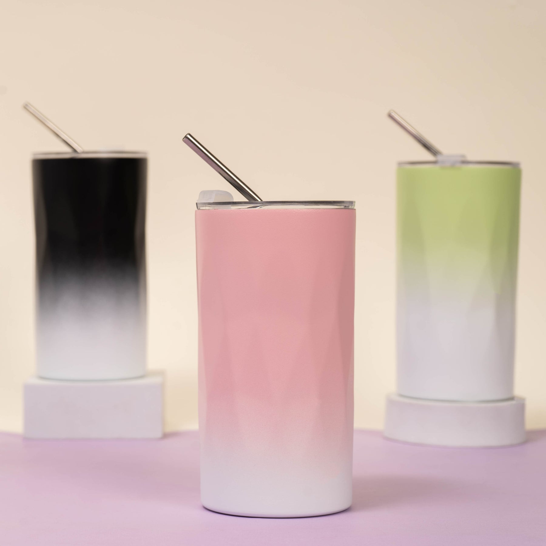 Staying hydrated is going to become super simple and stylish with our beautifully designed stainless steel glass with lid. This gradient tumbler isn’t just a practical accessory but a statement piece that can be flaunted while you are heading to the gym, running errands, or just going out and about with your day. The stainless steel glass with straw has a stunning gradient ombre finish that looks uber cool. No matter if you are someone who loves to have detox water or hot coffee, the insulated tumbler design helps keep your drinks the way you want so that every sip is as satisfying as the first.