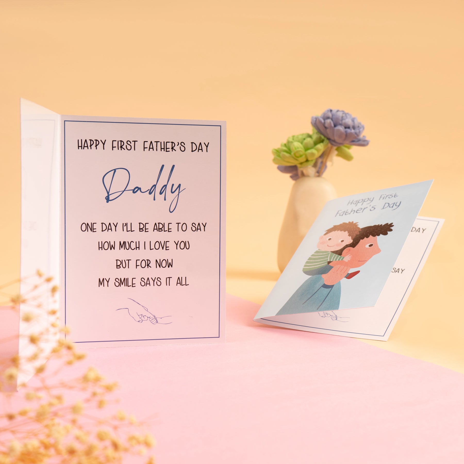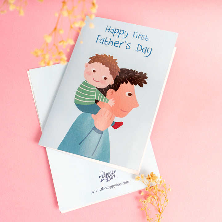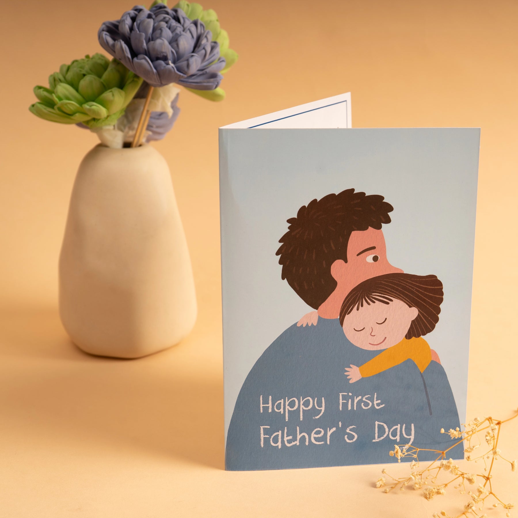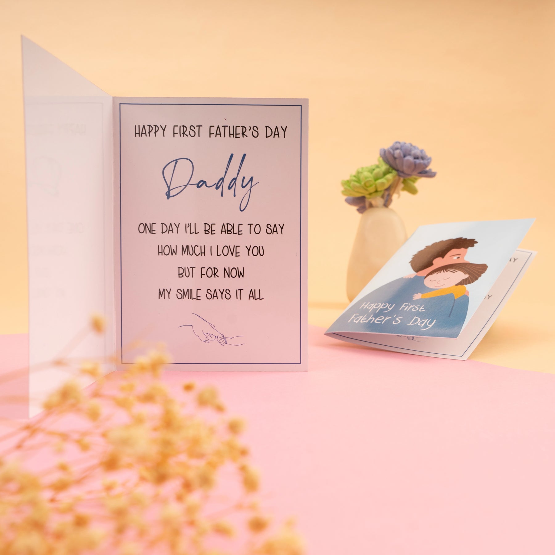 Firsts are always special, celebrate it with a First Father's Day gift. Our greeting card is like the first Father's Day wishes wrapped in a hug. This premium present captures the magic of becoming a dad for the first time. Thoughtfully crafted to wish ‘Happy First Father’s Day’ on behalf of the little ones. The soft pastel tones of the first Father's Day card reflect the mood of this day perfectly. The inside of the card features a lovely, simple, and heartwarming message.