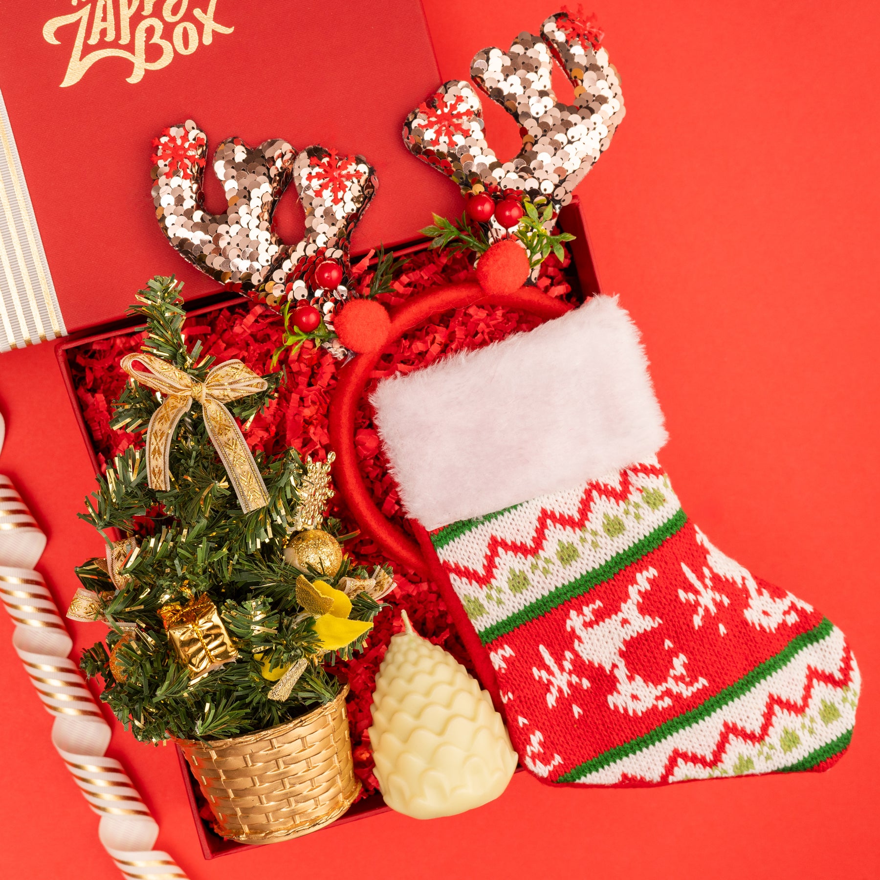 Alright, let's talk Christmas vibes. Imagine this: a tiny decorative Christmas tree right on your desk, a mini stocking you can fill with secret Santa treats (and yep, it even doubles as a cute tree decoration), and a playful reindeer headband hamper that makes all your festive photos way more fun. Sounds good, right?