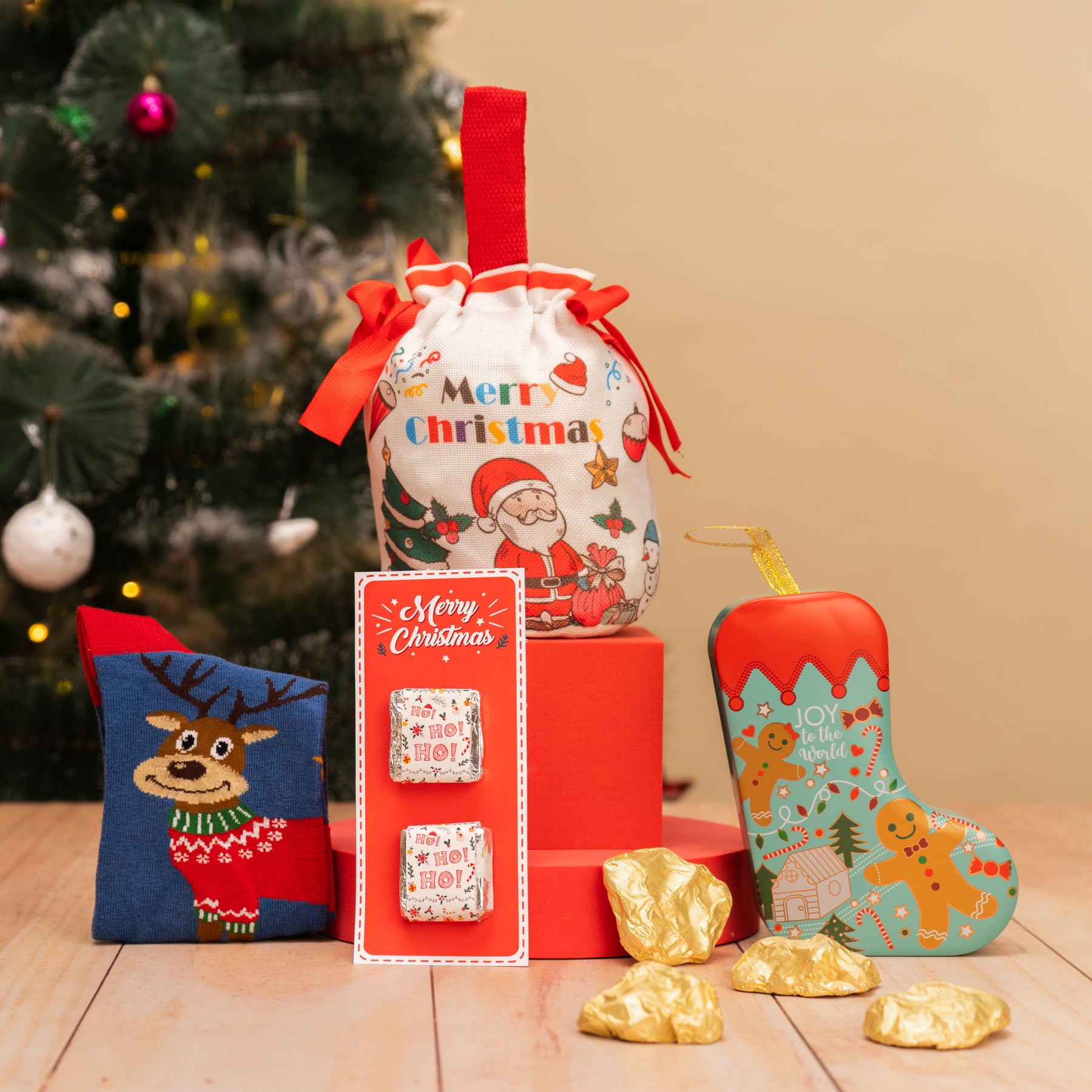 Celebrate the festive season with the Jolly Surprise Christmas hamper from The Zappy Box, a perfect gift for spreading holiday cheer to your loved ones, including family, friends, kids, and colleagues. This thoughtfully curated hamper includes an assortment of delightful items designed to warm hearts and brighten Christmas celebrations.