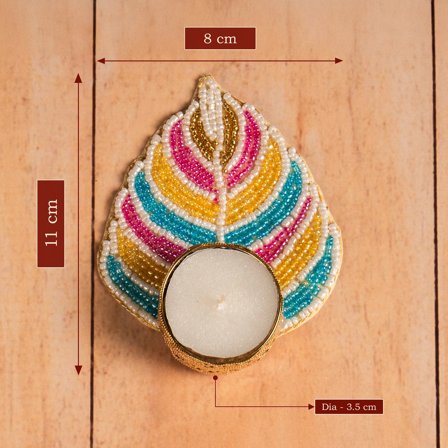 Put some flair into your festivities by adding The Zappy Box handcrafted Diwali candle holders in leaf shaped, which make lighting candles so much fun. Designed with the idea of making your house beautiful during diwali festival, these Metal leaf-shaped tealight diya holders are perfect for giving your home a warmer and welcoming glow on the nights of Diwali. A thoughtful and good-looking diwali gift, this Pooja decor Leaf t-light holder gift is a smart means of putting in some festive moods at home.