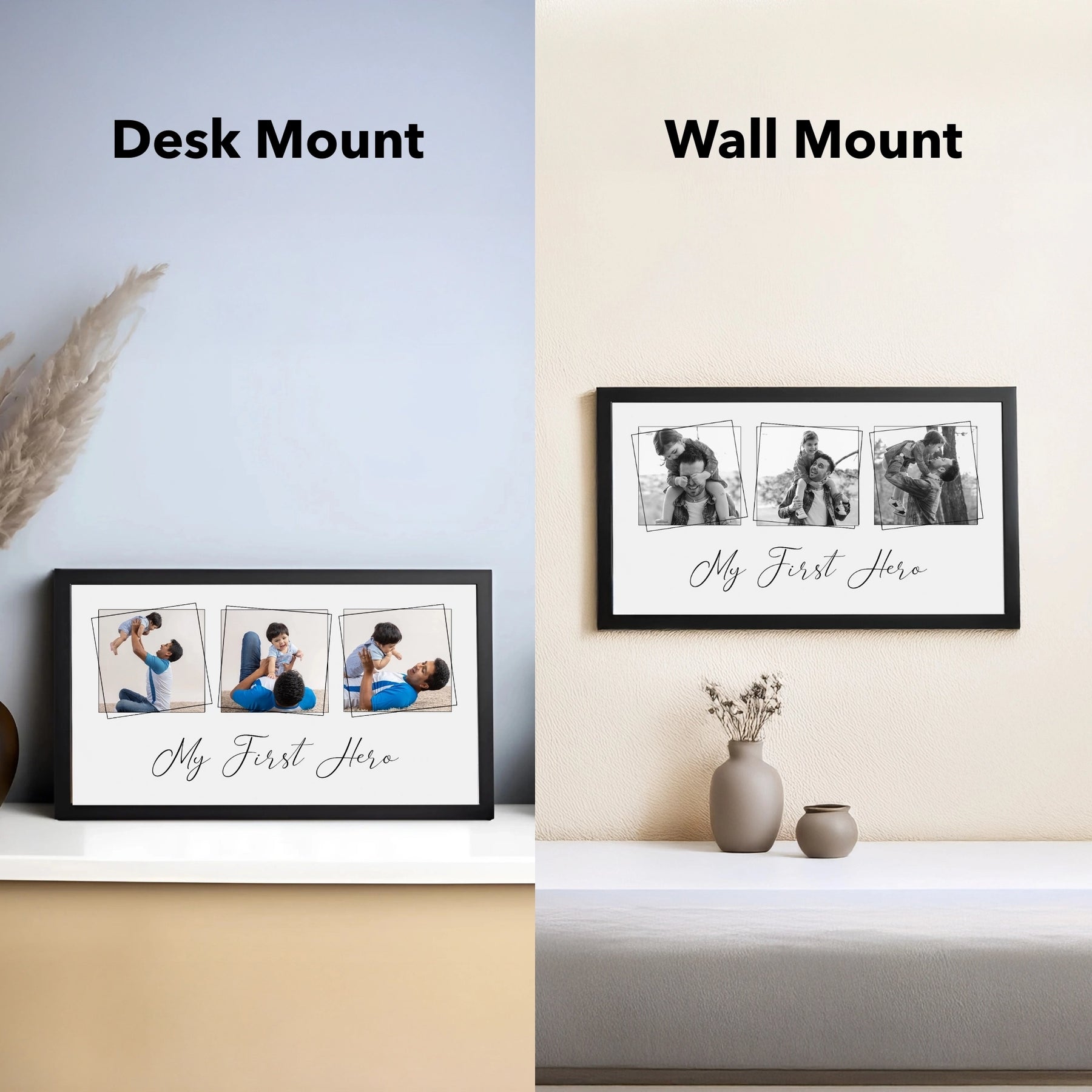 My first hero dad photo frame features both wall and desk mounting options. This gives you the much-needed flexibility, allowing you to display the meaningful keepsake at your convenience. Not just that, the personalization name option also allows you to add charm with your favorite images and create a truly unique gift that perfectly celebrates the essence of the hero of your life, your dad!