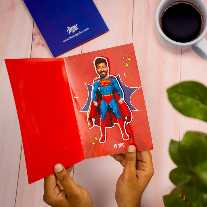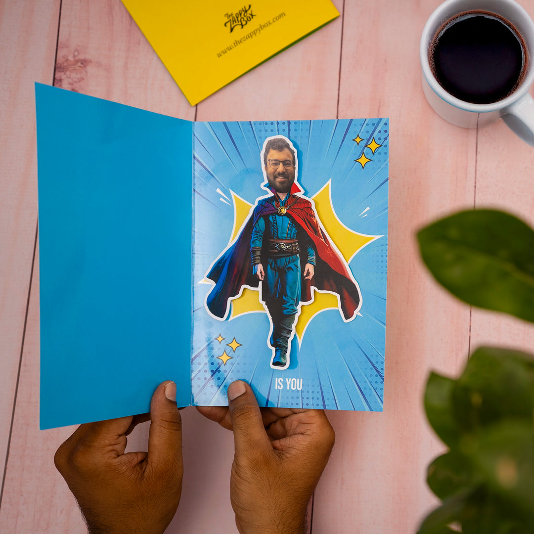 Fathers are children's first superheroes and pillars of strength for their families. This Father's Day, celebrate them by sending your hero a personalized Father's Day greeting card. This high-quality superhero dad gift card comes with a customized face addition. This quirky way to wish him well will definitely make him laugh. Our personalized Father's Day greeting card provides various iconic superhero options like Superman, Thor, Ironman, and Doctor Strange. Choose the one that resonates with your dad’s personality. To customize your Happy Father’s Day greeting card, you just have to upload your favorite picture of your dad. The rest will be handled by our team.
