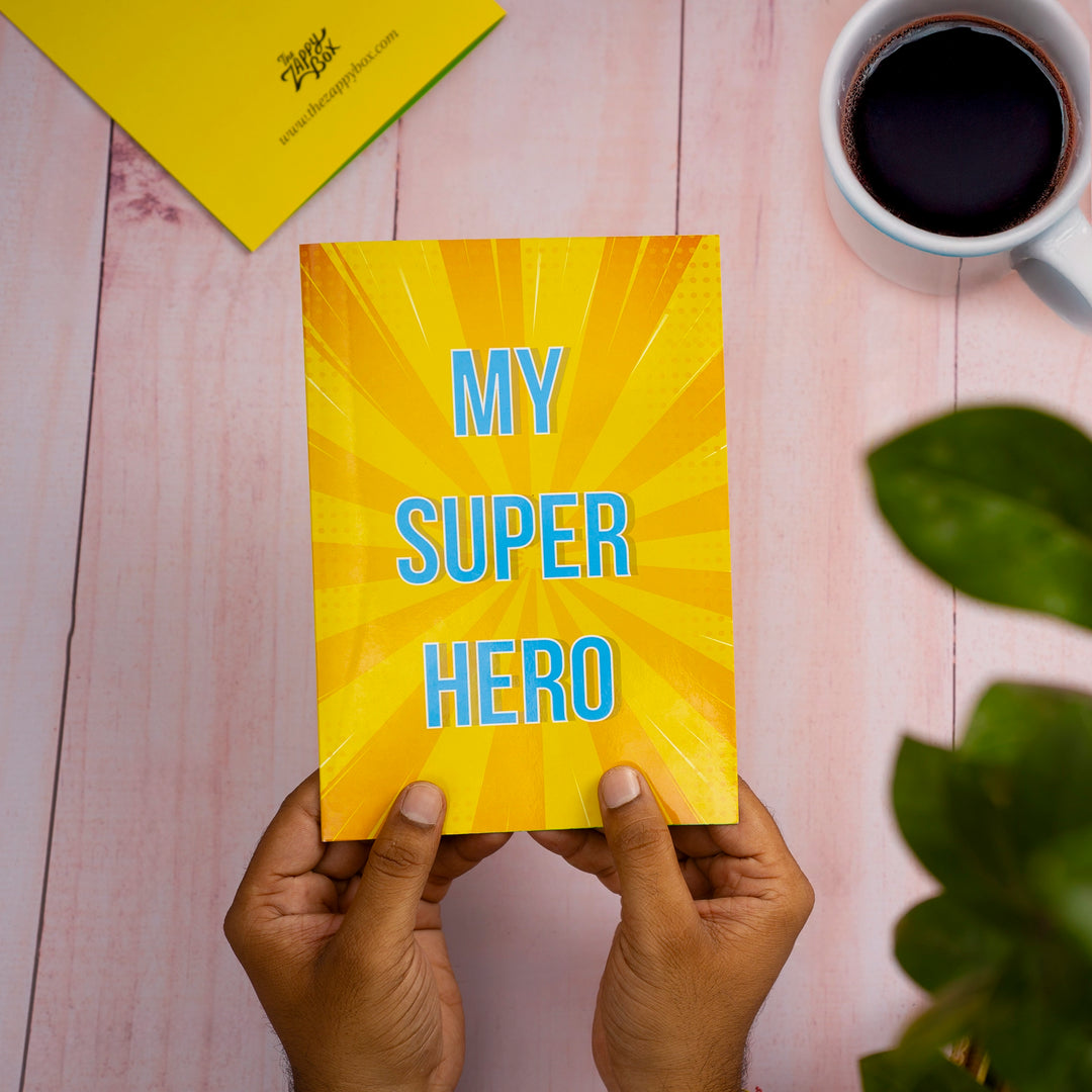 This card is suitable for both new and seasoned dads. The matte finish A5 foldable greeting card comes with an envelope. It makes your personalized superhero dad gift card one of a kind. Make this greeting card for Father a mini memory to celebrate your bond in comic style. Give him a personalized Father’s Day gift and acknowledge his dad jokes as his superpower.