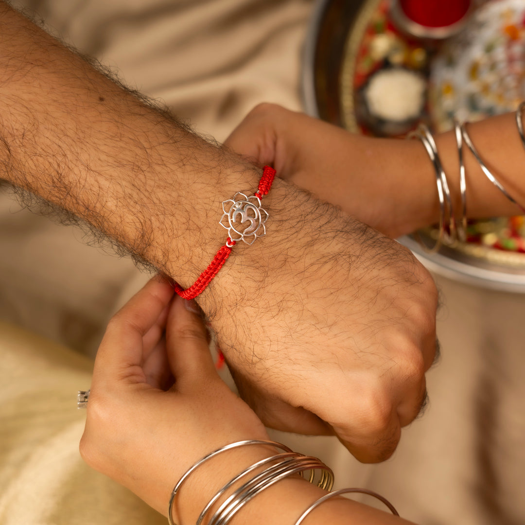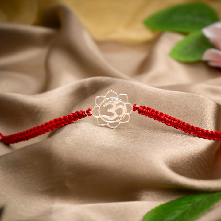 The Om 925 Silver Rakhi comes in a spiritual and elegant style. It falls under the category of wrist accessory. The design represents a traditional Om symbol etched on a silver charm with soft cotton thread. It is ideal for gifting on Raksha Bandhan, Bhai Dooj, or to bless your brother with peace, prosperity and various other occasions. To increase longevity, we recommend storing it in a dry place and avoiding contact with water or perfumes. Additionally, it is made with a sacred Om charm in hallmarked 925 silver, a perfect mix of divinity and certified craftsmanship.