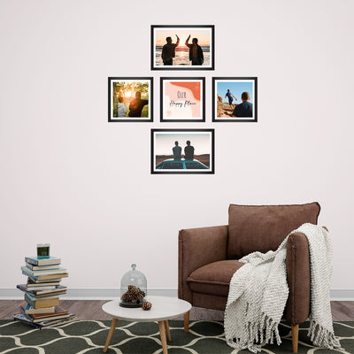 Bring warmth, character, and meaning to your home with the Our Happy Place Set of 5 Frames from The Zappy Box, a premium collection crafted for showcasing unforgettable moments, cherished family memories, or inspiring artwork. This set features one statement artwork frame and four photo frames (two square and two rectangular), giving you versatile options for creating beautiful collages or gallery-style arrangements on your wall.