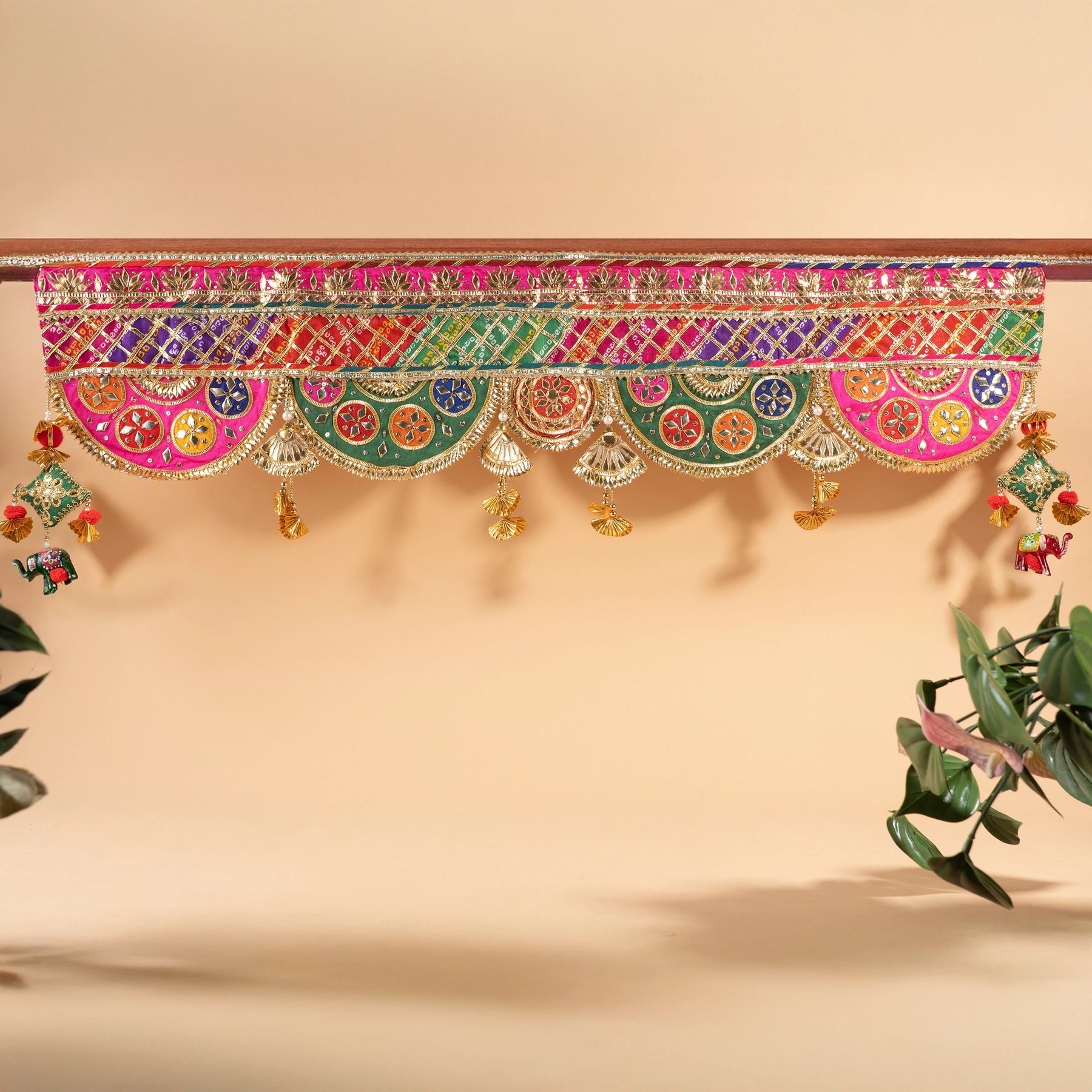 The Vibrant Patchwork Gota Patti diwali Toran from The Zappy Box is a stunning handcrafted festive door hanging designed to brighten your entryway with traditional charm and rich colors. Featuring intricate patchwork embroidery combined with the shimmering gota patti work, this door toran for diwali beautifully blends age-old craftsmanship with vibrant aesthetics. Perfect as an embroidered diwali toran, it adds an elegant and festive touch to your home for occasions like Diwali, weddings, and cultural celebrations.