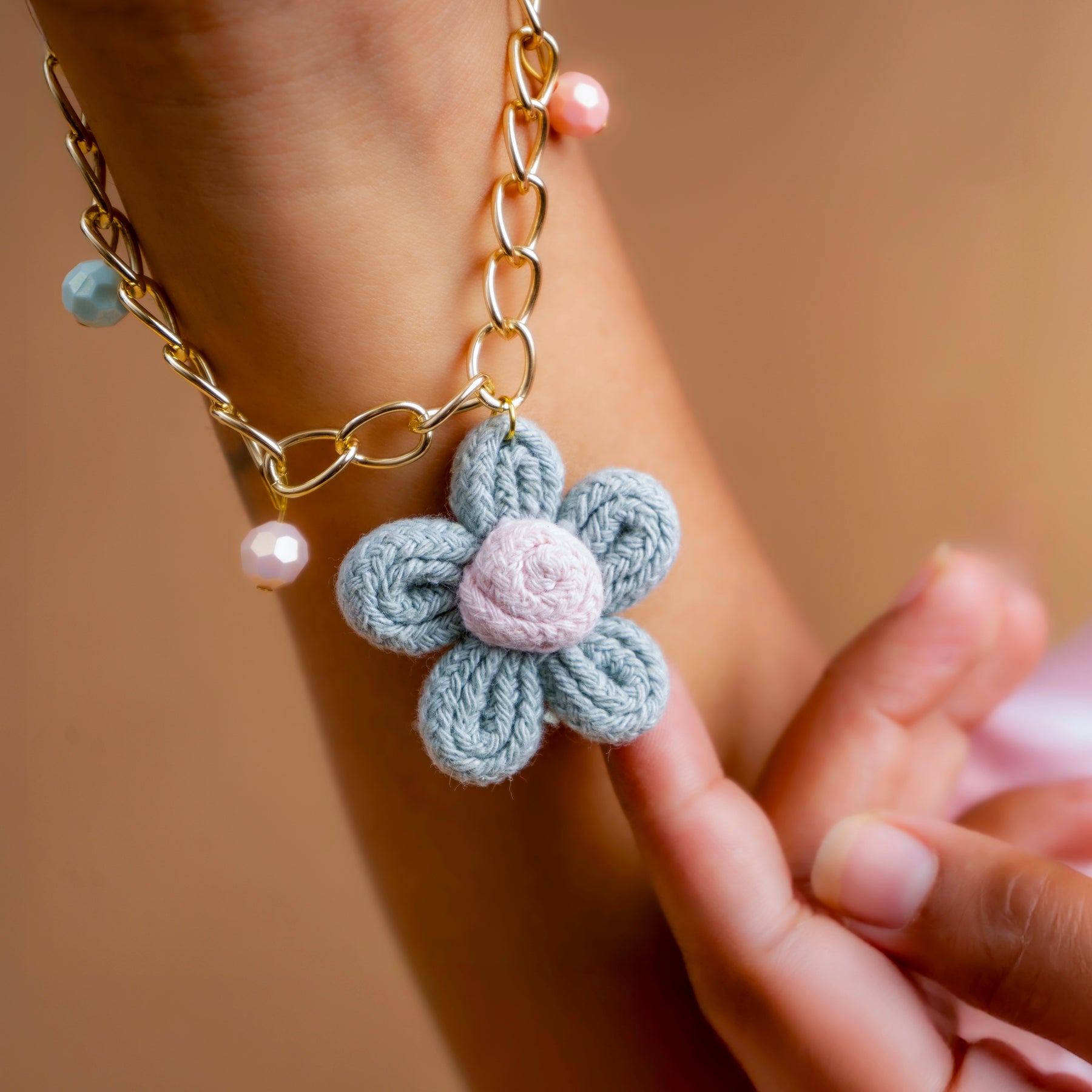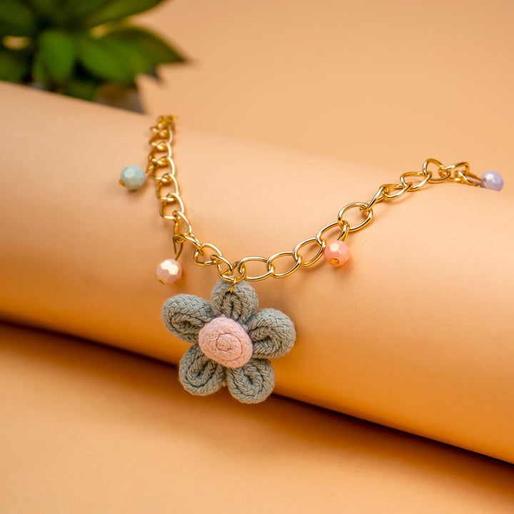 The Petal Bond Pearl Bracelet comes in a feminine and elegant style. It falls under the category of wrist accessory. The design represents a delicate bracelet featuring a pastel floral charm crafted to celebrate sisterhood with elegance and a soft color palette. It is ideal for gifting on Raksha Bandhan, birthdays, or simply to show your love for your sister. To increase longevity, we recommend avoiding contact with water, perfumes, or rough surfaces; store in a dry place. Additionally, it is lightweight and thoughtfully designed, ideal for both festive occasions and everyday wear.