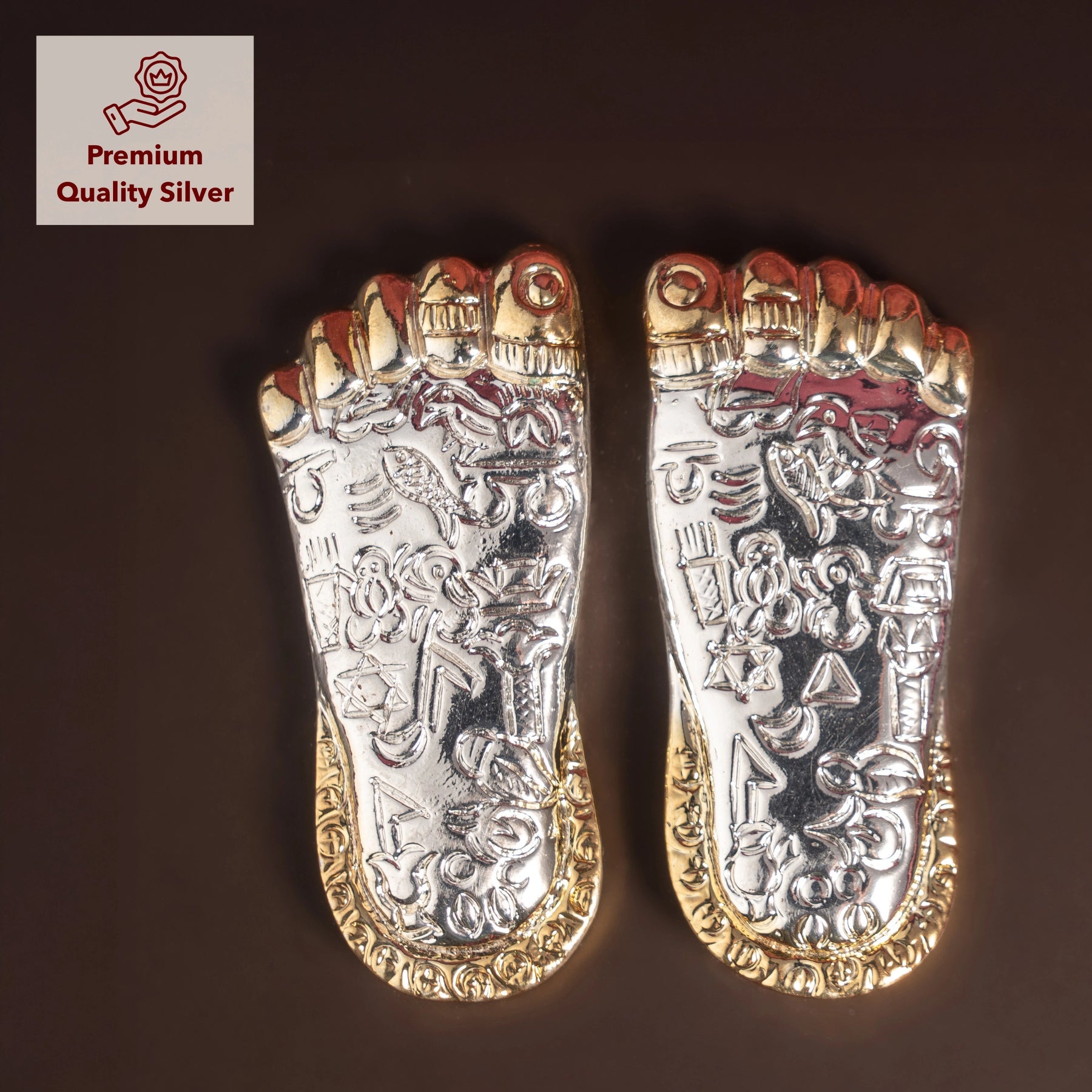 The Pure Silver Charan Paduka from The Zappy Box brings the sacred essence of divine footprints into your home, beautifully crafted in genuine silver for auspicious rituals and daily worship. Charan Paduka, symbolizing the feet of Goddess Lakshmi, are revered in Hindu tradition as emblems of prosperity, peace, and positive energy. Made with pure silver, these padukas are not only decorative but also potent symbols believed to attract blessings, material wealth, and spiritual well-being.