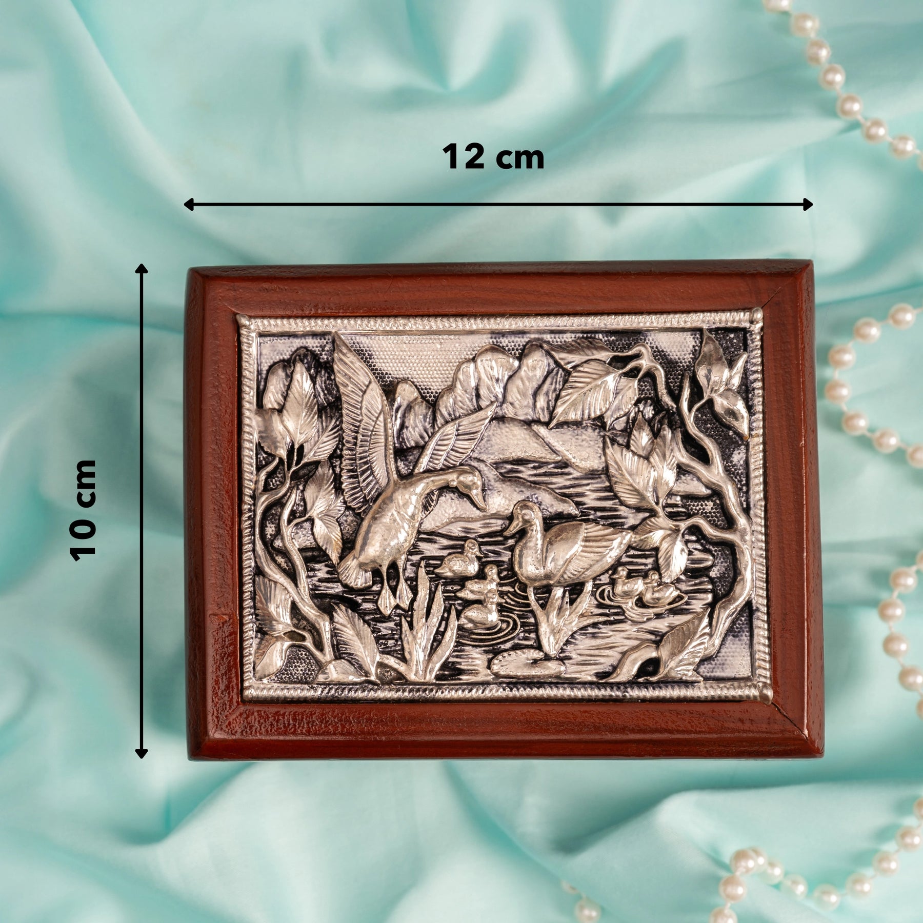 The timeless elegance of the Pure Silver Luxe Dry Fruit Box, thoughtfully designed from 999 pure silver, makes any occasion special. Designed to store dry fruits and sweets, they also enhance your home decor, making it a luxurious Diwali gift. The medium wooden box is compact and charming, measuring 12 x 10 x 6 cm and weighing 340 grams, with a package box of 19 x 17 x 9 cm and a total packaged weight of 930 grams.