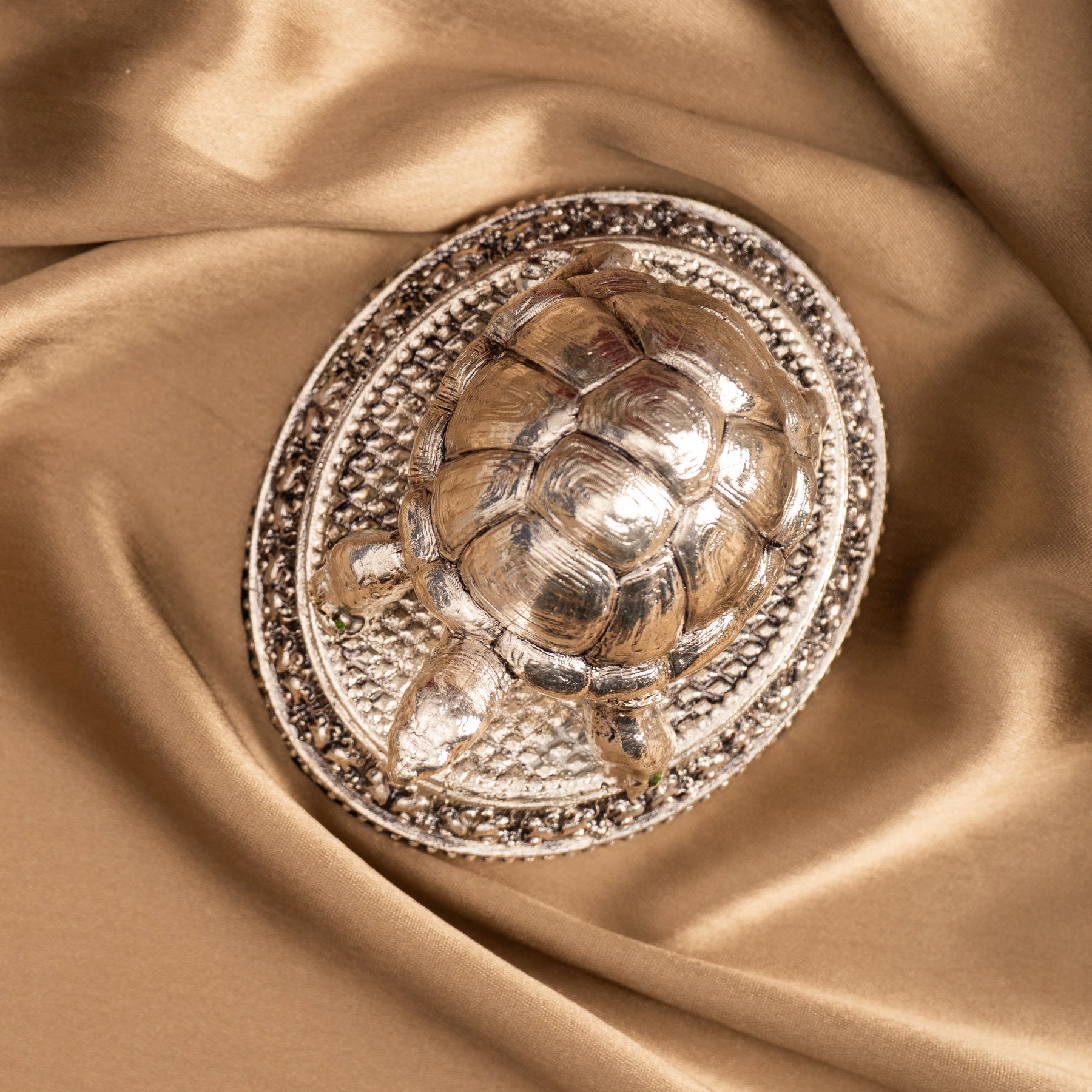 There's something timeless about bringing home a beautiful and meaningful piece. Our pure silver turtle showpiece is crafted from 999 silver, with intricate hand-carved details that make it a true work of art. In Vastu and Feng Shui, the turtle is believed to attract prosperity, stability, and protection, making this silver turtle figurine more than just décor and an elegant addition to your Diwali decor. Whether you place this silver tortoise statue on your puja altar, desk, or living room shelf, it instantly adds a touch of elegance and positive energy.