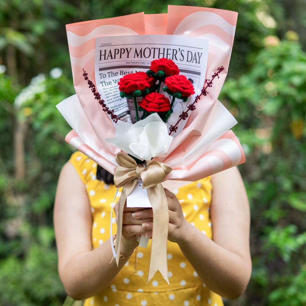 Celebrate your mom with a timeless gesture; this elegant rose flower bouquet is the perfect way to show love, gratitude, and admiration. Featuring soft-touch artificial roses in soothing blush pink and cream hues, this bouquet is wrapped in premium craft paper and tied with a satin ribbon for a graceful finish.