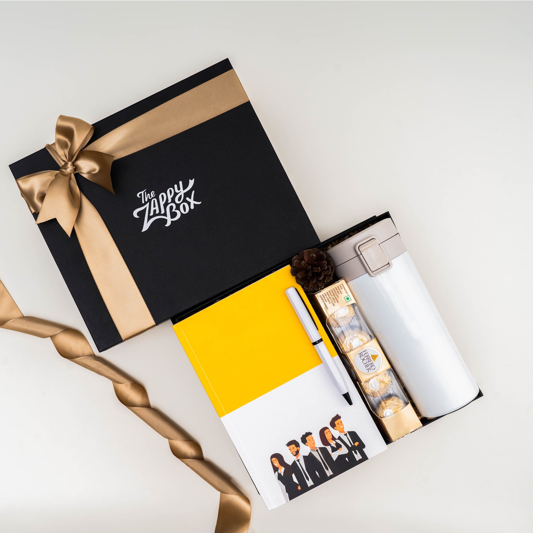 This reusable Zappy gift box doesn’t just look good; it is good for the environment as well. It is designed to be reused and repurposed. You can use it to store your essentials in a presentable way. The premium office starter kit has everything an employee needs, which makes it the ideal luxury business gift box for corporate gifting.