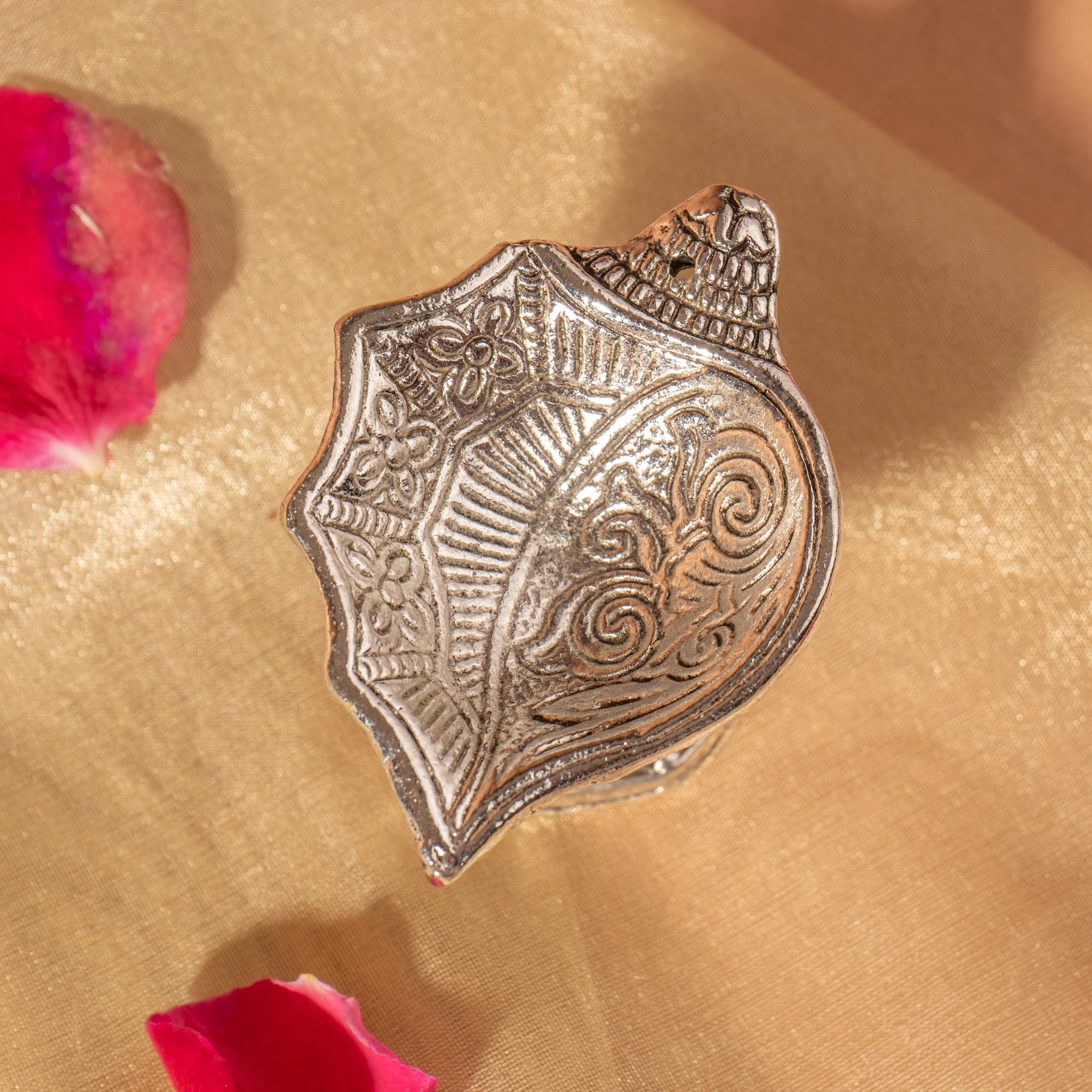 Silver and its alloys, including German silver, are believed to signify purity, wealth, and spiritual well-being. The thali is used to arrange ritual items and offerings in an elegant, unified manner, enhancing the sanctity of poojas for Diwali, weddings, Navratri, and other festivals.