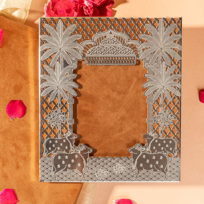 Handcrafted to reflect the rich narrative and miniature work of pichwai artisans, this photo frame offers a harmonious blend of elegance and ethnic charm, perfect for gracing living spaces, pooja rooms, or gifting for special occasions. Its animal motifs, especially cows and lotuses, evoke auspiciousness, purity, and tranquility, making it a unique and meaningful gift for those who appreciate classic Indian artistry.