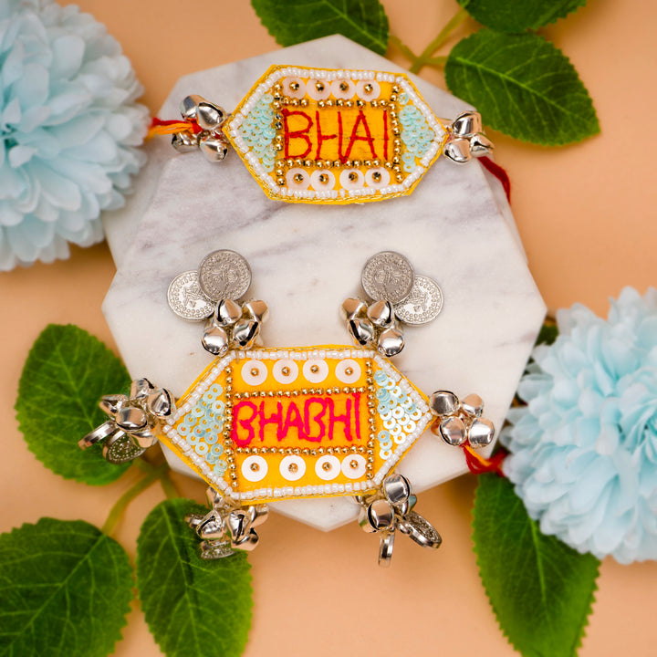 Honor the steadfast relationship of siblings with The Zappy Box for Traditional Ties Bhaiya Bhabhi Rakhi Hamper, which shows a blend of modern touch and heritage. The hamper includes a Designer Bhaiya Bhabhi Rakhi paired with sweets and a thoughtful gift that enhances the festivity of Raksha Bandhan. The beautiful Rakhis, along with the ethnic rakhi gift box, add elegance to the entire look, making it a symbol of love and protection.