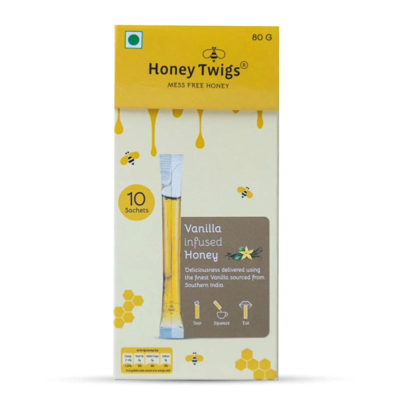 100% pure and antibiotic-free, each 80g pack ensures you get the best quality natural honey infused with a delightful vanilla aroma and taste. With a shelf life of 12 months, it’s an ideal pantry staple for those who appreciate natural, flavorful sweetness with every bite or sip.