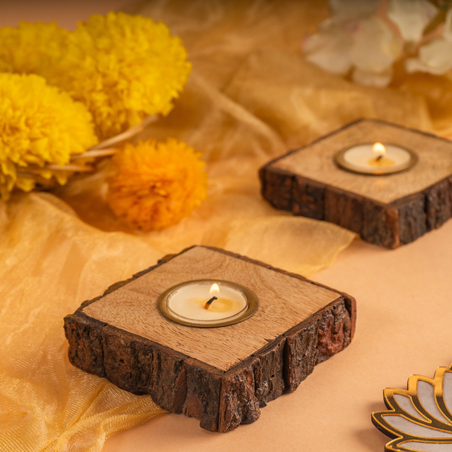 Ideal for Diwali and other festive occasions, this single wooden t-light holder transforms ordinary candlelight into a glowing centerpiece, creating an atmosphere of warmth and positivity. The natural wood craftsmanship ensures durability and uniqueness, making each piece a charming addition to your diwali decorations or a thoughtful diwali gift for loved ones.