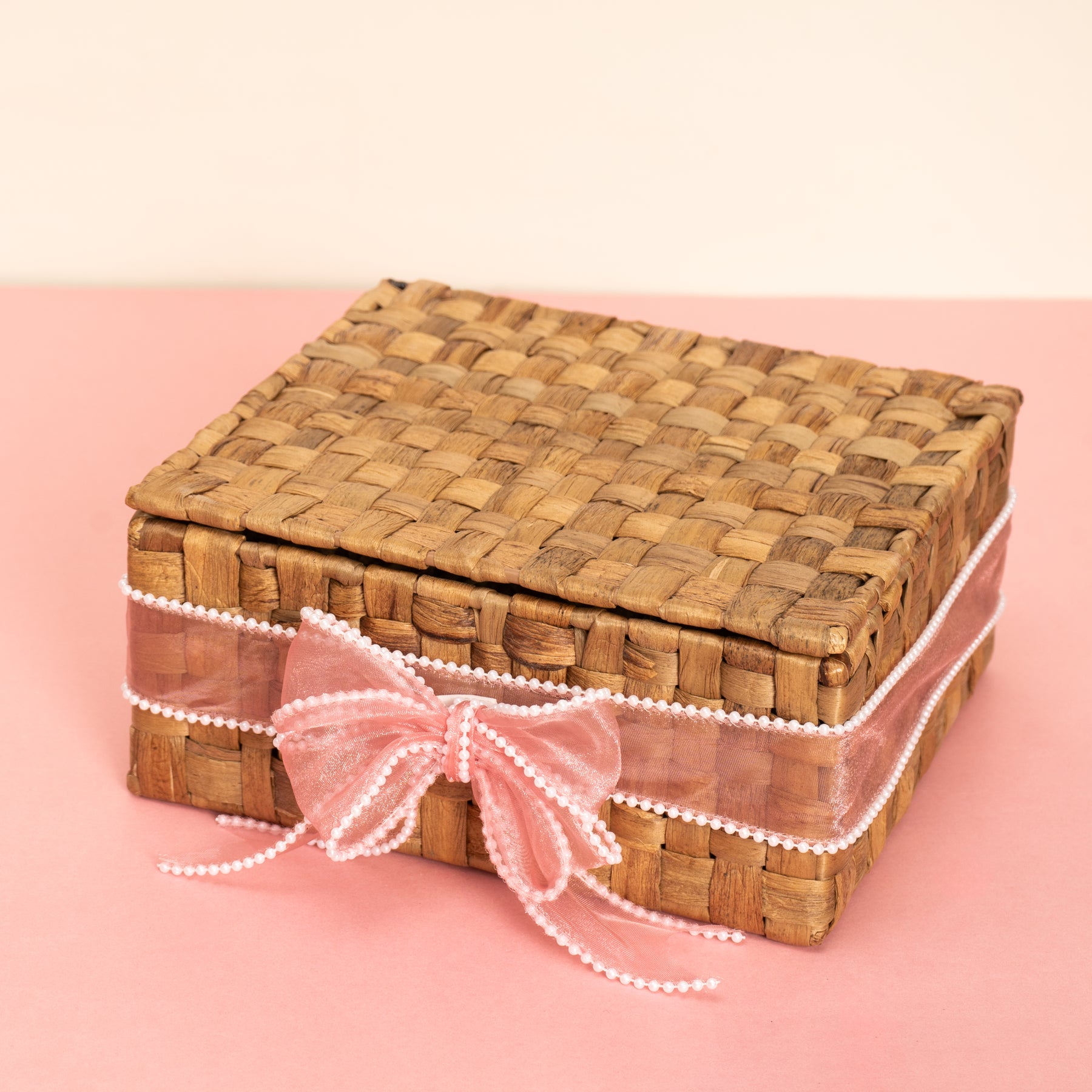 Elevate your gifting experience with the Woven Seagrass Gift Basket from The Zappy Box. Crafted from natural water hyacinth, this beautifully handwoven basket offers a stylish and sustainable way to present your gifts. Its modern rustic design combines elegance and practicality, allowing you to package 4 to 5 gift items in a sturdy, reusable container that impresses from the moment it is unwrapped.