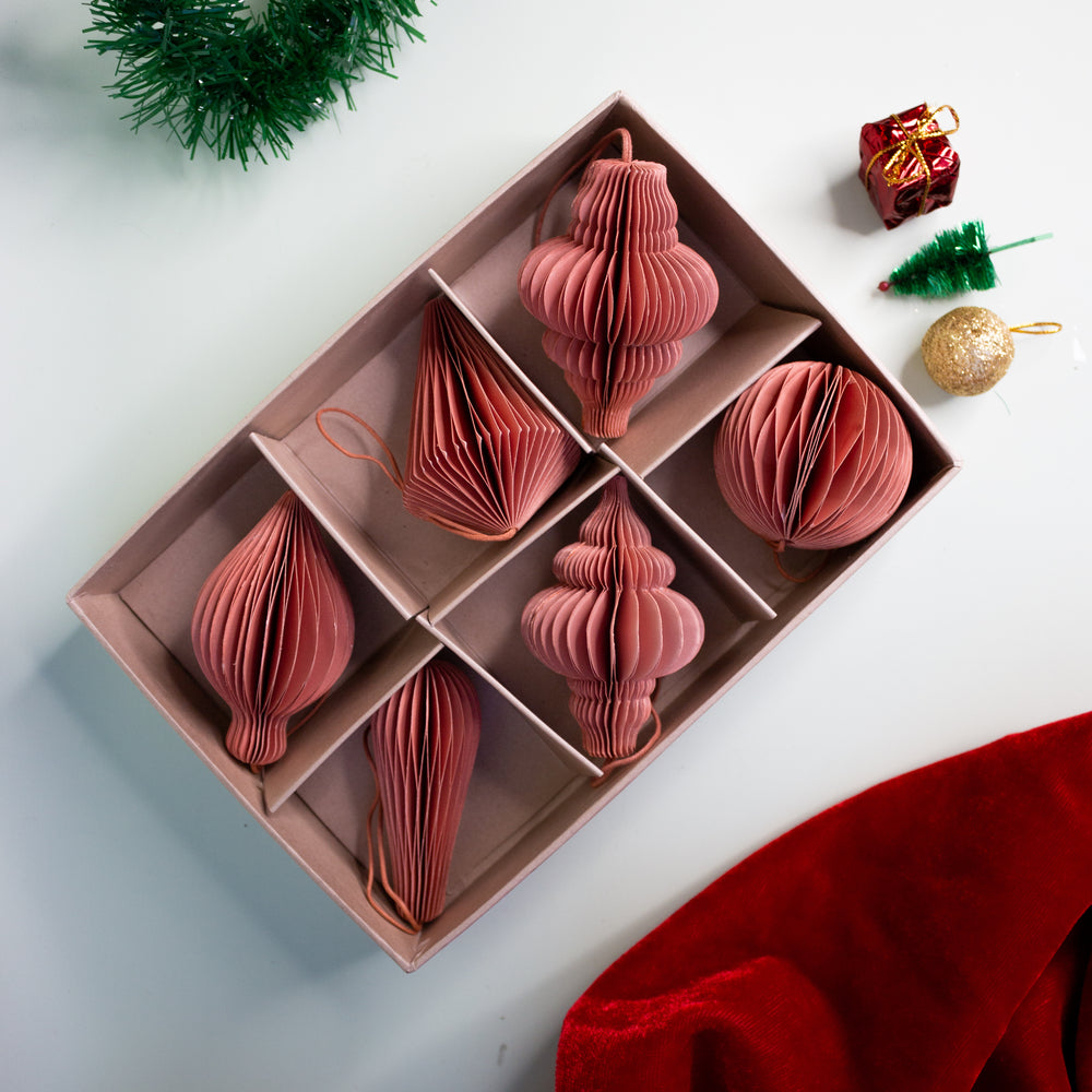 Add a soft and elegant touch to your festive decorations with the X-mas Origami Decor Pink set from The Zappy Box. This set of six beautifully crafted pink origami balls offers minimalistic design charm and premium quality materials, perfect for enhancing the look of your Christmas tree or holiday displays. Lightweight and simple to hang, these ornaments bring a delicate and modern aesthetic to your seasonal decor.
